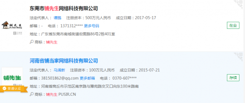 小编所查到的两家铺先生资料,从企查查上查到,该公司注册主体已发生变化:由商丘市铺先生网络科技有限公司变更为商丘市鑫鑫网络科技有限公司,再变更为河南省铺当家网络科技有限公司。而商丘铺先生对外宣传业务范围是全国连锁。