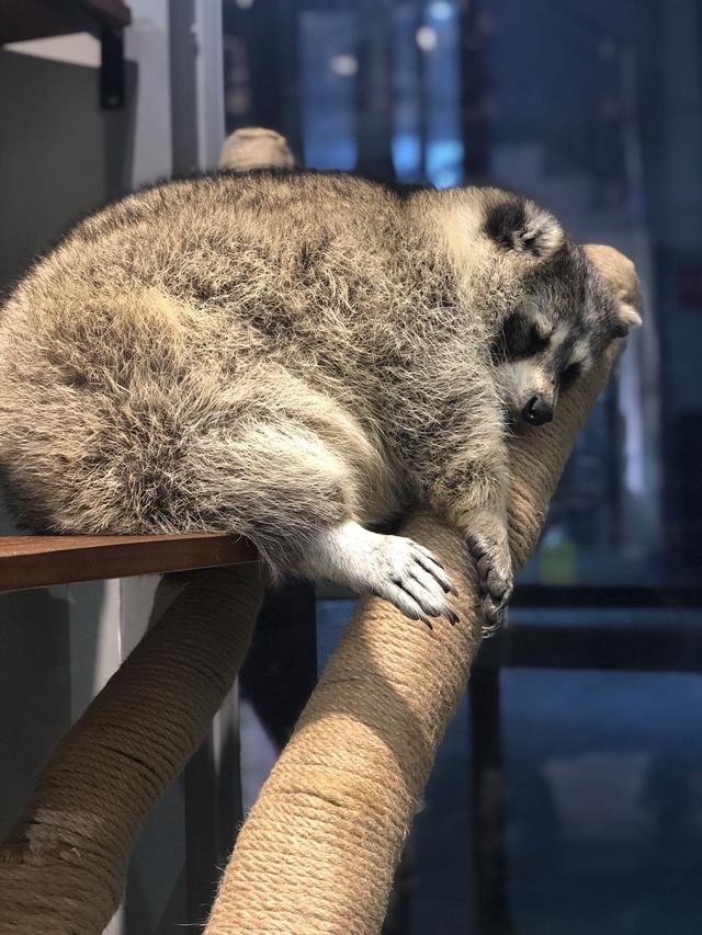 我和闺蜜也都是萌宠狂爱者,看到可爱的,毛茸茸的宠物就开心到不行!上了二楼,我们第一眼看到的就是龙猫浣熊,小巧肉嘟嘟的身材,附上一双超大有神的眼睛,真的可爱到爆!看到龙猫浣熊一直朝我方向看,便忍不住上前抱抱它。