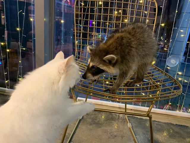 小姐姐还热心说可以投食给浣熊吃哦,这样也能增加和小动物的互动!我拿了一块肉干放在手心,浣熊便用小嘴轻轻叼起放入口中低头快速咀嚼,发出"吱吱"声,吃相也是可爱至极。