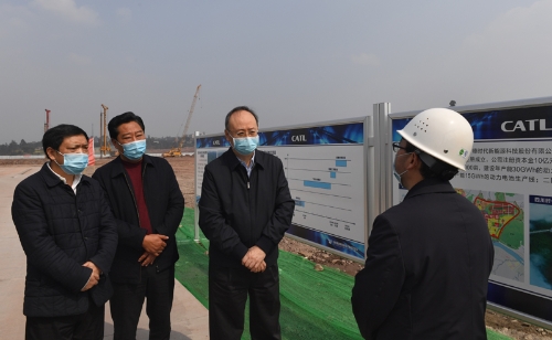 尹力在宁德时代动力电池宜宾制造基地建设工地,调研重大建设项目复工复产情况。