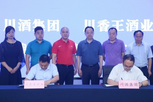 成都市酒业协会会长王墙、秘书长温立国,川酒集团党委书记、董事长、总经理曹勇,川酒集团党委副书记、副总经理方剑生,川酒集团产业发展有限公司总经理任宇,川酒研究院院长、总助赵金松,川香王董事长舒洪光等相关领导出席本次签约仪式。