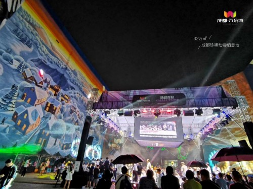 7月11日-12日,连续降雨多日的成都迎来难得的两个好天气。新都区、海宁市两地相关领导及多位企业家和30多家媒体机构出席了成都万朵城生活体验馆开放盛典,万朵城龙缸4600㎡「中国最大面积半室内壁画」也正式开放,数千人涌入现场打卡;「决战龙缸-用舞之地·全国街舞精英挑战赛」也激情战罢,全国数百名街舞爱好者斗舞龙缸,成为成都潮流文化的今夏第一盛事。