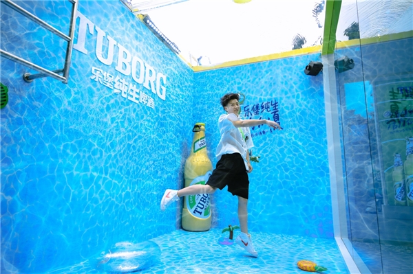 这次“活力夏日派对”,乐堡纯生啤酒还特地为乐山玩咖打造了专属“泳池”打卡点,利用视觉错觉的设计,不湿身也能拍出水下大片!在乐山,首次亮相的它即刻吸引了全场目光,大家纷纷拍照打卡,分享晒出自己的“水下大片”,收获了满屏点赞。