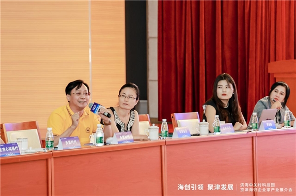 天津滨海—中关村科技园办公室副主任孔然,北塘湾科发公司副总经理刘凤,中天天普(天津)科技有限公司总经理李国茂,氪星创服副总裁郭建飞出席推介会。