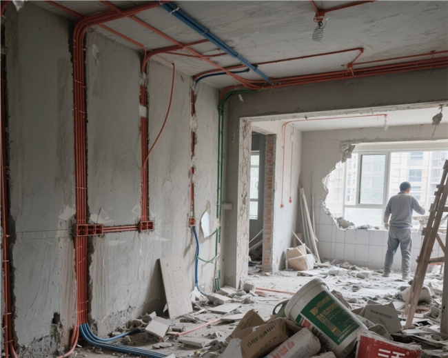 买完房的第三个月,我签下了装修合同。对方信誓旦旦:“全程直管,绝对省心”,还拿出了盖着红章的“质量承诺书”。起初一切顺利,水电开槽、水泥进场,我每天在工作群里看进度,直到某天周末去现场,才发现不对劲:
