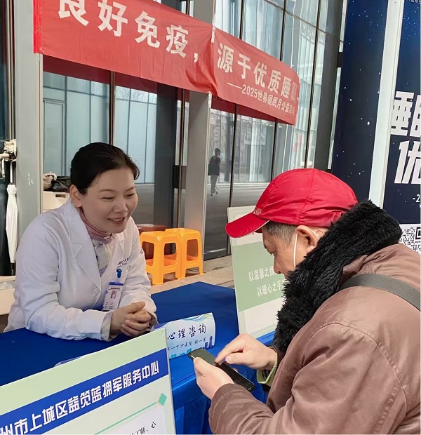 3.19采荷街道社区卫生服务中心开展“守护健康,共享美好——世界睡眠日”科普宣传,心理科副主任医师胡长春开展睡眠障碍咨询和义诊服务。
