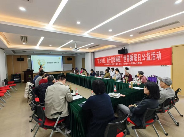 3.19联合上城区益笕蓝拥军服务中心参与困难家庭帮扶活动,开展“世界睡眠日”科普宣传,我院心理科志愿者心理咨询师于文华为采荷街道困难群众开展如何提升睡眠质量的心理健康讲座。