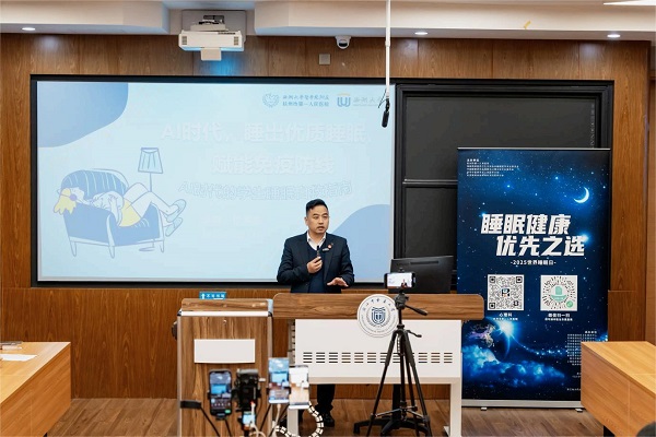 3.13联合浙江省中医药大学开展“AI时代,学生的睡眠自救指南”的心理讲座,儿童青少年心理专家,厌学干预专家,市一心理科主任张海生医生为“世界睡眠月”拉开序幕。张教授从最前沿的AI技术,AI对心理及睡眠的影响,谈到睡眠卫生知识,再到各类梦境的解读,医科生未来工作中如何导夜班,在校生睡前适宜的助眠运动......一个接一个轻松的话题,吸引线上+线下观众合计1W+人次。