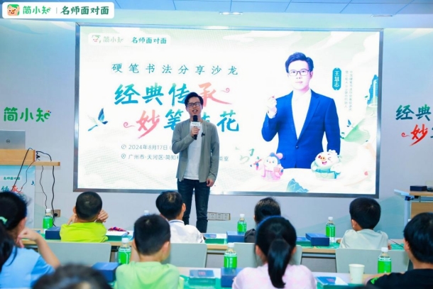 2020年,王慧志与简小知强强联合,共同创建了简小知在线教育平台,掀开了线上硬笔书法教学的崭新篇章。在实际教学过程中,他融合多年教学心得,独创了“联想教学法”等创新教学模式。例如,当教授“捺”这一笔画时,他巧妙地将其比作孩子们熟悉的滑梯,并配以“捺像滑梯,一划一踢”的生动口诀,帮助孩子们轻松掌握笔画要领。这种富有创意的教学方式不仅提升了孩子们的学习专注度,还有效激发了他们的想象力和艺术感知能力,引导他们以全新视角欣赏世界之美,并将这种美感自然融入到日常书写实践中。