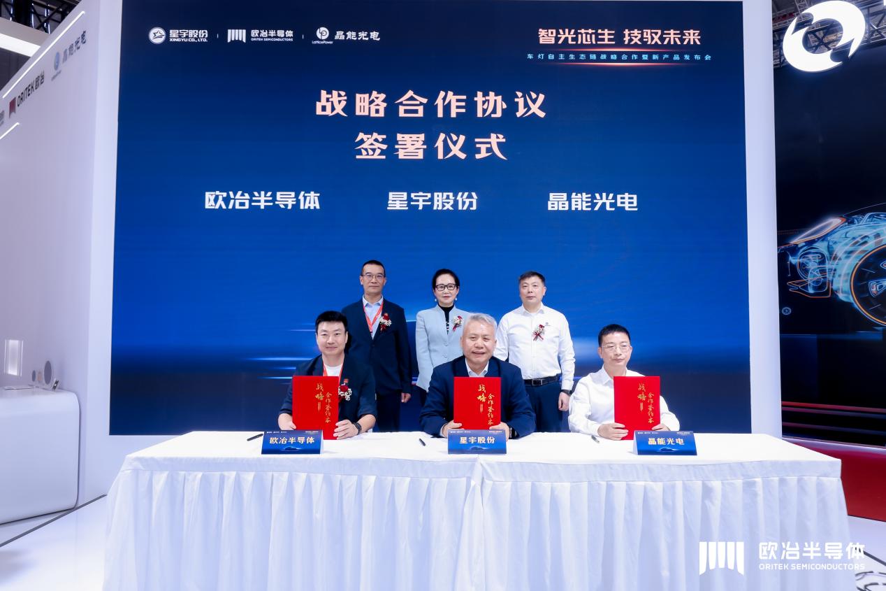 2025年4月23日,上海车展现场,国内首家聚焦智能汽车第三代E/E架构的SoC芯片及解决方案商欧冶半导体,与星宇股份、晶能光电正式签署战略合作协议。三方围绕“全系自主产业链生态”展开深度合作,共同开发IVISION智眸大灯,并即将实现量产,此举标志着中国汽车产业链在核心技术自主化、国产化领域迈出里程碑式一步。
