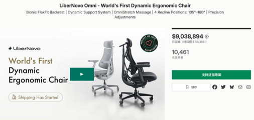 因其带来的变革性体验,清闲动态人机工学椅迅速引爆市场,其产品在国内首发24小时,销量突破5000台,首批现货售罄。海外众筹成绩亦十分亮眼,自 6 月 24 日登陆 Kickstarter 众筹平台后,上线 24 小时内,众筹金额即突破 约675万人民币;目前众筹金额已突破900万美金,超6000 万人民币,斩获万名用户支持,成为平台近期备受瞩目的现象级项目。