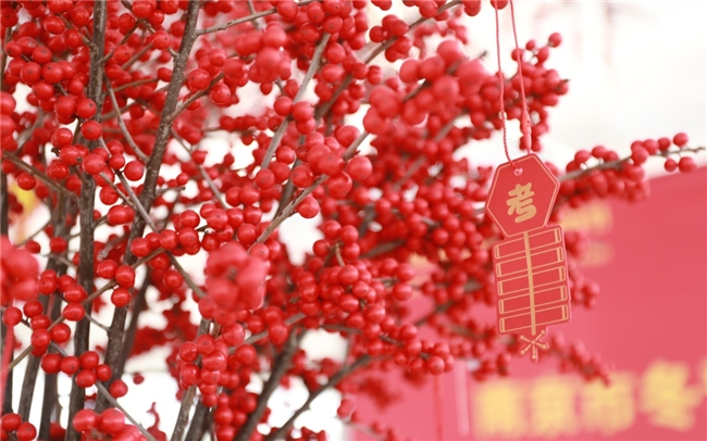 紧邻红色李巷的冬青树园艺主题创意农园,是冬季赏花的好去处:数十亩如玛瑙般挂满枝头的北美冬青,果色红艳,游客可以自助采收冬青切枝,“承包”整个冬日的喜庆。