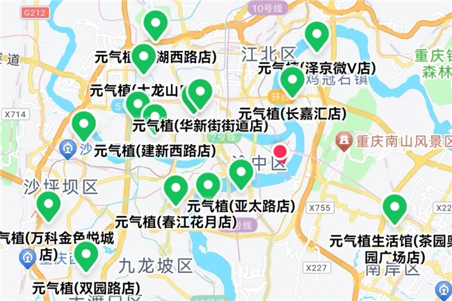 抖音上的地图显示,元气植在全国拥有约2250家店,拥有量前10位的城市分别是:潍坊(90)、重庆(68)、贵阳(68)、南宁(62)、成都(56)、菏泽(52)、青岛(50)、玉林(46)、唐山(30)、烟台(29)。拥有20家店以上的城市18个,分别是:广州(28)、永州(28)、贵港(28)、保山(28)、遵义(26)、洛阳(26)、汕尾(25)、南阳(24)、中山(23)、许昌(23)、来宾(23)、钦州(23)、南充(22)、深圳(22)、柳州(22)、兴安盟(21)、长沙(21)、晋中(20)。这应该是元气植项目在全国市场重要性的分布图,感觉在山东、广西、贵州、重庆、四川、河北等地发展不错。
