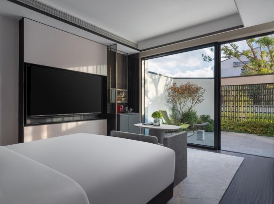 作为洲际酒店集团(IHG)旗下奢华精品酒店品牌——金普顿在大陆地区的首店,苏州金普顿竹辉酒店便以其精致的设计风格闻名。它将传统的苏派建筑元素与现代美学巧妙融合,营造出一种既古典又时尚的空间氛围。特别是其室内外景观设计,如南园河畔步道、百年香樟树等自然美景,为新生家庭提供了一个宁静悠然的休养环境。