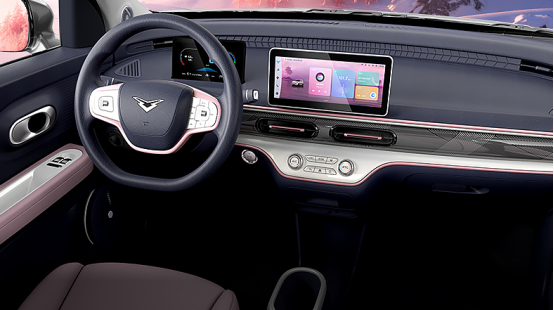 车内门板设计参考飞翔之翼,斜切式分色座椅辅以粉白色调,让整体风格颇为俏皮可爱。此外,多功能方向盘、全液晶仪表盘、大尺寸中控液晶屏、贯穿式的空调出风口等区域的点缀设计,内饰清爽简约,舒享安逸。镀银“指尖陀螺钥匙”更是给用户一件精美的把玩物件。