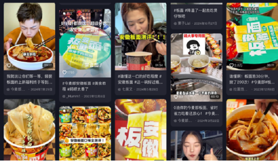 今麦郎板面对产品力的坚持很快得到了市场热烈的反应,2023年今麦郎板面凭“久泡不糟”热梗及“胜过板面店里的好味道”火遍社交媒体,近80万网友自发种草,蝉联抖音方便速食类榜单第一名,成为大学生热捧的“网红爆品”。