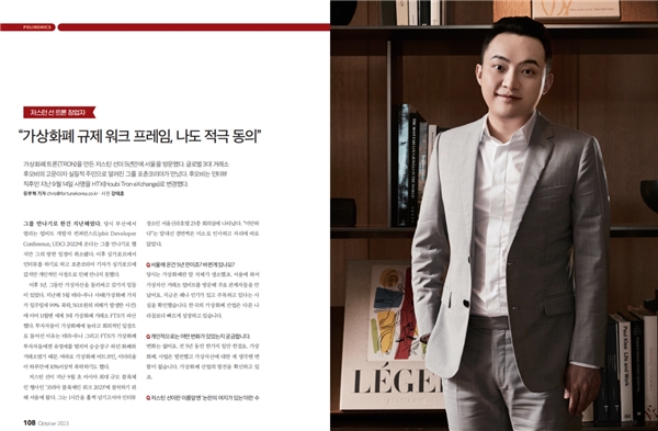 今年9月,波场TRON创始人、火币HTX全球顾问委员会委员孙宇晨在韩国首尔参加亚洲最大规模的区块链活动“韩国区块链周2023”时,“韩国《财富》杂志对孙宇晨进行了深度独家专访,在本次采访中,孙宇晨就加密行业现实发展状况、监管、RWA和个人梦想等话题进行了详细的分享。