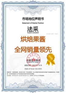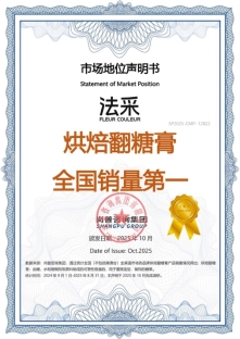 近期,尚普咨询集团向济南法采科技发展有限公司(以下简称“法采”)旗下品牌法采的烘焙色素、烘焙翻糖膏与烘焙果酱产品颁发市场地位声明。此次,经过严密的数据考证,尚普咨询集团确认向法采授予【法采 烘焙色素全国销量第一】【法采 烘焙翻糖膏全国销量第一】与【法采 烘焙果酱全网销量领先】权威声明。法采的烘焙色素、烘焙翻糖膏与烘焙果酱产凭借其现代化的生产和专业的产品,赢得了市场的广泛青睐。