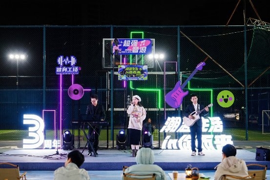 本次活动,除了常规的赛事之外,健身工场精心打造了融合美食、文创、音乐为一体的“潮趣市集”,聚焦时下潮流热点生活方式。这里不仅有刷爆抖音、小红书的数十种网红美食,有汇聚了二次元、国潮、手作等的文创市集,更有活跃于各大音乐节的原创乐队同频献唱!Z世代的潮元素把这座健身场馆打造成一个属于年轻人、属于新潮文化的引力场。这样的创新玩法打破了人们对健身场馆的固有认知,不仅吸引大批周边社区居民的参与,在社交网络也赚得不少眼球,众多本地的网红慕名前来打卡。