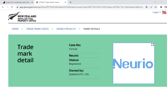 同时,通过新西兰商标注册局的官方网站查询得知,JAT(Sunnya为其子公司)也是新西兰纽瑞优商标的持有人: