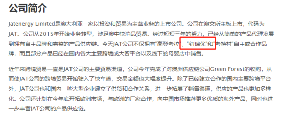 因为是境外公司,百度搜索结果不太多,但是能从2019年的新闻上得知这是一家澳洲上市公司,并且早在2019年的新闻上JAT自主品牌就有纽瑞优了。