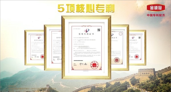 中国专利配方指金领冠珍护系列产品获得的中国发明专利,专利号:ZL201680013841.3 发明名称:核苷酸组合物及其在食品中的应用。