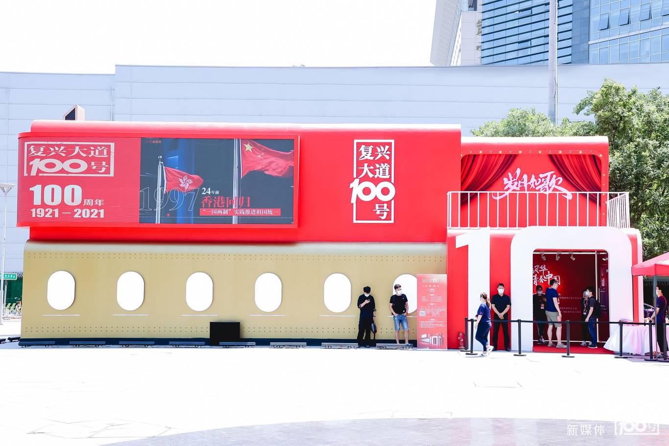 “复兴大道100号”线下体验馆,作为人民日报为献礼建党100周年而推出的互动快闪店,以中国共产党百年来带领中国人民谋幸福、谋复兴的重大历程为主线,通过亲民化的视角、创意展陈与趣味互动,以场景化、沉浸式的体验,展现中国共产党始终坚持以“人民为中心”的初心和使命,重温历史,致敬时代。在这条复兴大道上,“时光长廊”、“初心纪念馆”、“峥嵘岁月”、“奋斗一厂”、“富民大街”、“逐梦太空”等一系列场景通过老物件还原了百年间的大事件,通过光影让参观者感受从革命时期到社会主义建设时期的时代变迁,让更多国人对百年辉煌历程感同身受。