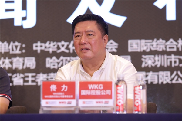 WKG创始人、WKG国际控股公司董事局主席佟力现场为青少年运动员代表颁发5万元金腰带奖金支票,并为职业运动员代表颁发百万运动员奖金支票,将本次发布会推向高潮。
