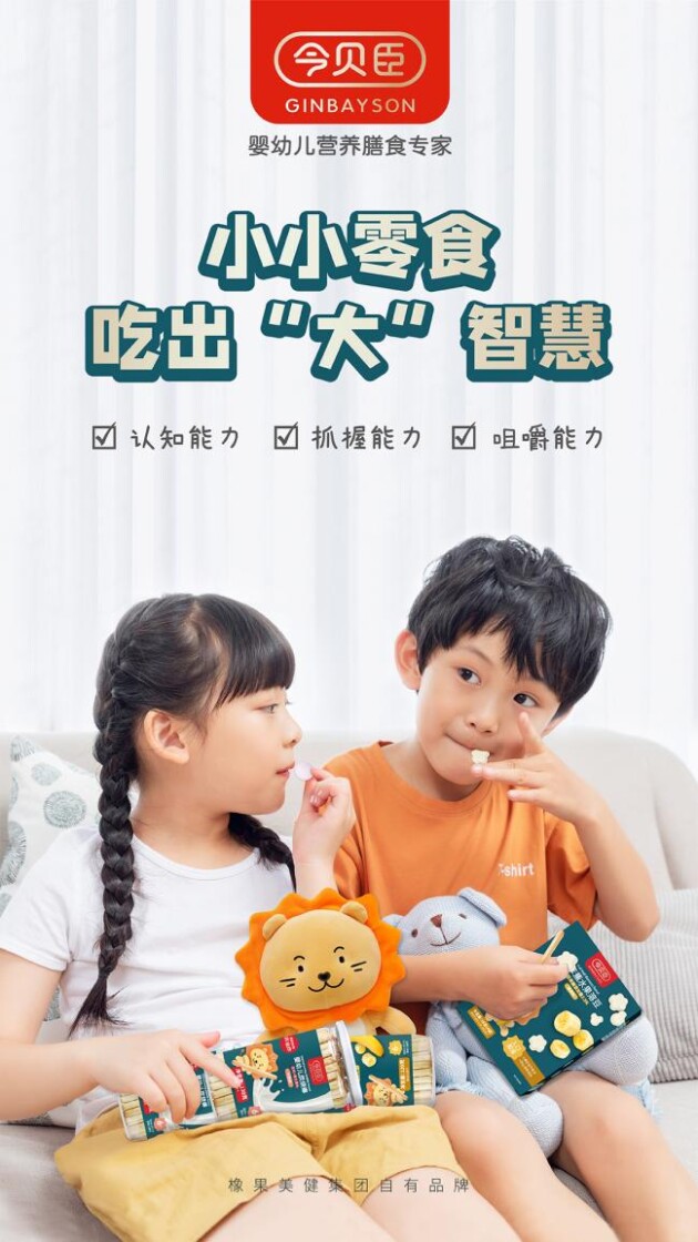 今贝臣是橡果美健集团自有品牌,主攻婴童零辅食市场,品牌通过对婴童市场的洞察及健康婴幼儿零辅食的不断探索和研发,推出了一系列产品,覆盖婴童零食辅食以及营养品三大品类,涵盖了营养、安全、健康三个方面。