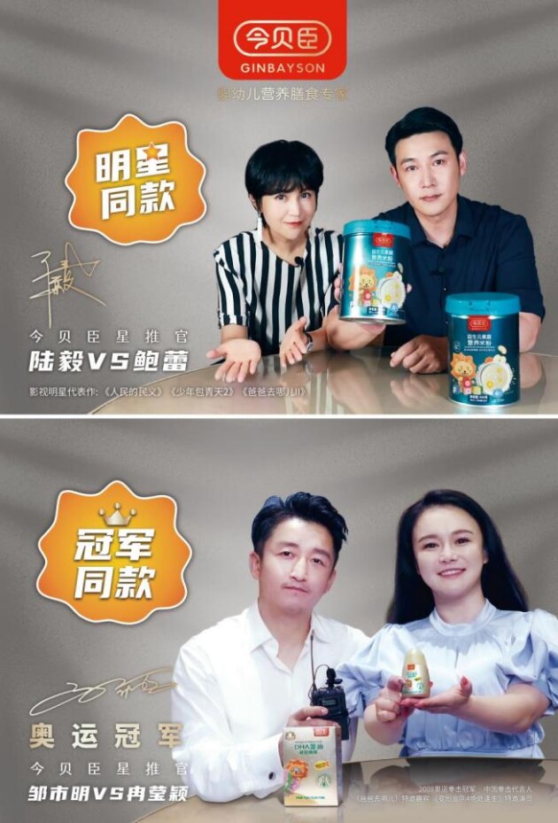 今贝臣团队始终坚持初心,不断进取,截至目前共开发3个系列板块:辅食、零食、健康营养品50余款产品,再不断受到市场热捧之际,品牌方迅速出手,2021年,香港影视明星熊黛林,黄圣依,陆毅夫妇,邹市明夫妇成为今贝臣星推官, 明星们对今贝臣品牌的认可,也充分证明今贝臣产品的可靠性,同时也进一步提升了今贝臣的品牌公信力。