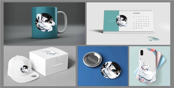 考虑到羌绣元素的复杂程度,在主体形象线条及颜色的设计上简洁明了,让神兽看上去更加具有神秘飘逸感,但又不失可爱的卡通既视感。整体构图紧凑统一,趋于符号化的设计也更有利于多场景化的商业应用。