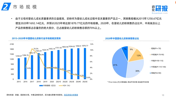 不久前艾瑞发布的《2021中国母婴消费市场趋势洞察》报告(以下简称“报告”)显示,母婴消费高端化、精细化、个性化趋势明显。调研数据显示,面对宝宝的生长需要,曾经“一罐奶粉吃到大”的育儿方式已明显变化,宝爸宝妈们会更注意选择不易上火、更接近母乳成分、营养元素更丰富的高端奶粉。同时报告也显示,羊奶粉、有机奶粉等高端品类销量上涨明显,与此同时,特殊配方奶粉销量也持续走高,适度水解、乳铁蛋白、微量元素、益生菌含量等更为精细的需求都成为年轻父母选择奶粉的新标准。