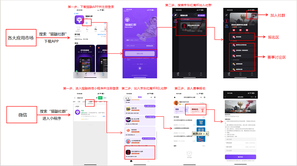 本次红魔REL秋季线上赛于2024年10月19日正式开启报名,参赛选手可通过微信搜索“猫鼬小程序”或在应用市场下载“猫鼬APP”,加入「京东红魔杯REL社群」进行赛事报名,比赛分组、赛事组织、赛果公布等赛事相关信息将全程在社群中发布。