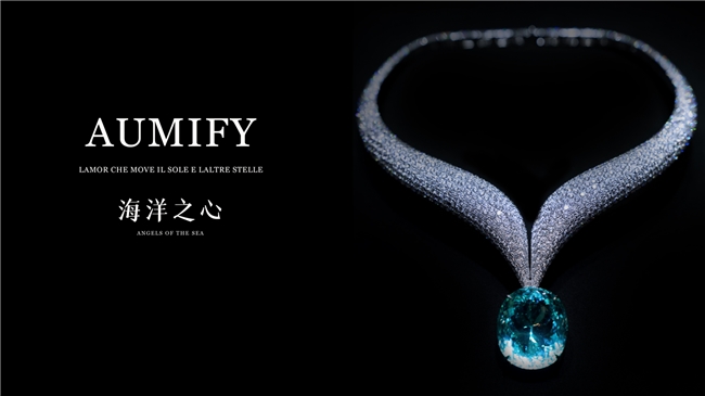 【海洋之心】——76克拉帕拉伊巴碧玺为主石,湛蓝如加勒比海潮汐,搭配爱心切割钻石环绕,宛若将整片南洋星空戴于颈间,浪漫至极。