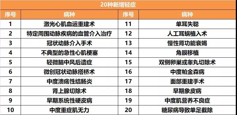 (平安福2019Ⅱ新增20种轻症)