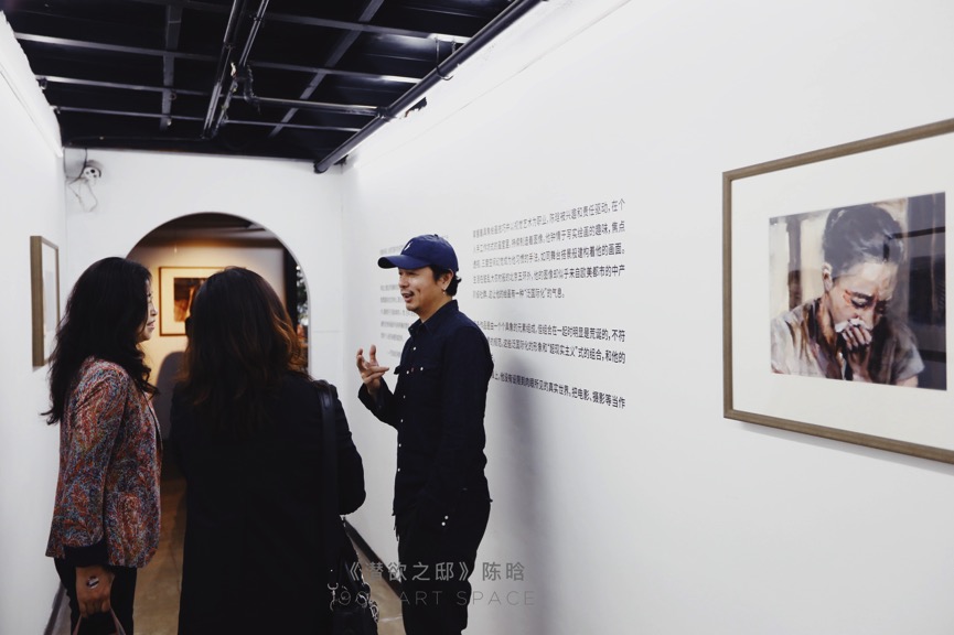 陈莫非的5幅作品在展厅的二层,纯真青涩的风格,和父亲陈晗的作品形成反差,冷冷的色调又有着相似的韵味,很多人驻足并拍照记录下这份美好。
