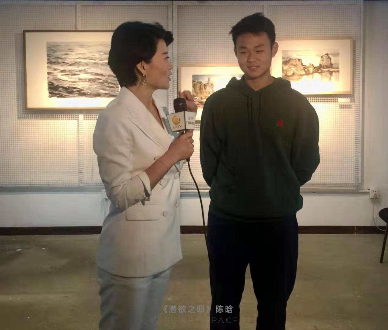 同时,在展厅二楼展出了陈晗之子陈莫非的5幅水彩风景画习作。出生于2003年的陈莫非,目前就读于东北育才外国语学校,从小喜欢画画的他以前每个周末都会跟爸爸一起在工作室画画、看书。从他的作品中可以看出一个热爱绘画的男孩在不断追寻自己的艺术语言。曹琳琳对莫非单独进行了采访,他讲述了父亲给予他的影响和指导,他准备出国深造,继续在艺术的道路上学习,能够融合西方和东方绘画的精髓并用更多元的艺术形式表达自我。