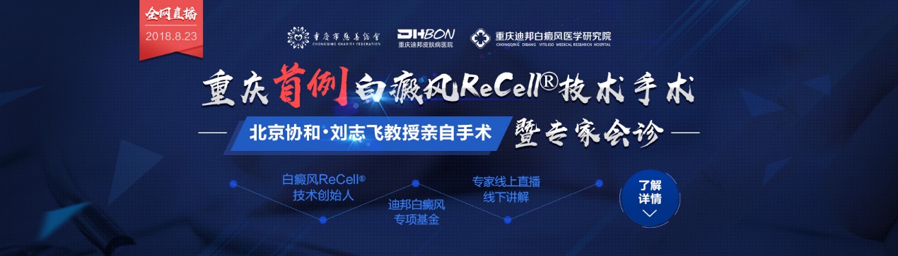 皮肤,是人体的第一道防线,因而经常受到各种皮肤疾病的困扰,尤其是白癜风患者,因其易扩散、难治疗、易复发等特点,让无数患者头疼……但是,白癜风患者有希望了,2018年8月23日北京协和专家将空降重庆,现场直播重庆首例ReCell®手术,带您揭秘其治疗白癜风的突破性优势!