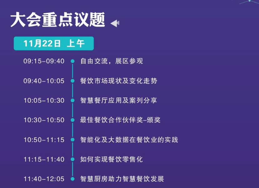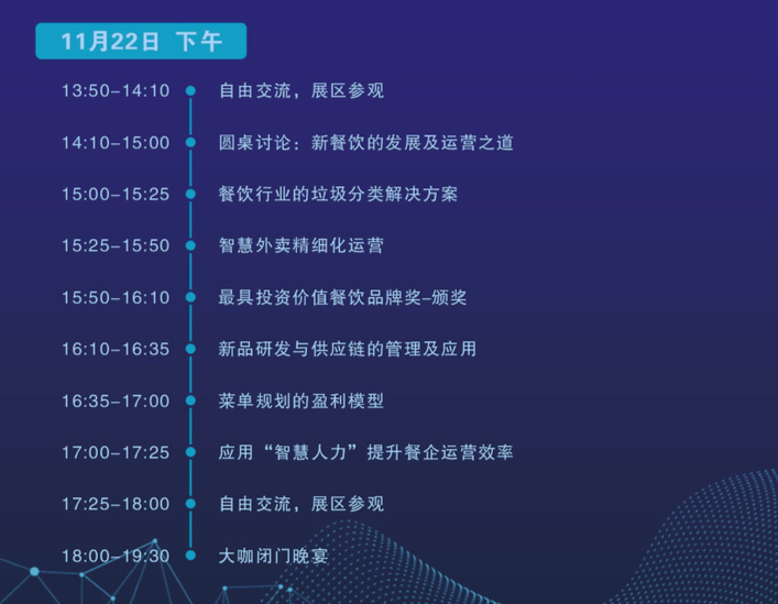 智慧餐厅、智能科技、无人餐厅、垃圾分类、5G食代、餐饮数据化、绿色餐饮、智慧厨房、包装升级、餐饮零售化、食品安全、外卖运营、品牌细分、餐饮机器人、供应链、门头战略、菜单升级、新品研发、人力资源、明厨亮灶、升级连锁、VR、下乡出海、餐饮加盟、品牌设计、新场景营销、社保入税