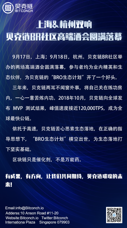 9月17日,上海;9月18日,杭州。贝克链BR社区举办的两场高端酒会圆满落幕,参与者均为业内精英和生态伙伴,为贝克链的“BRO生态计划”开了一个好头。